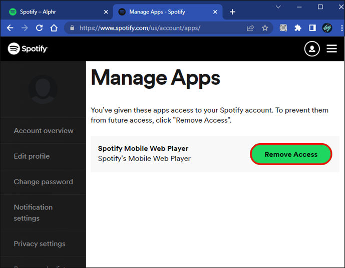 Spotify 계정에 연결된 타사 앱이 있는 경우 이것이 원인일 수도 있습니다. Spotify에서 액세스를 제거하여 문제가 해결되는지 확인하십시오. 이렇게 하려면 다음 단계를 따르세요.