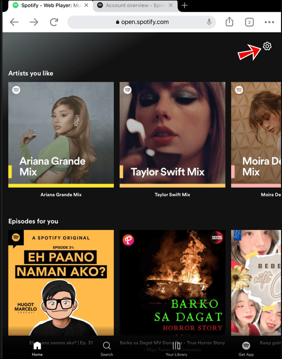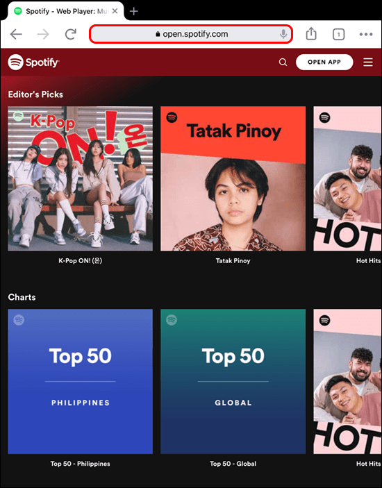 - 새 웹 브라우저에서 Spotify 웹사이트 로 이동합니다 .