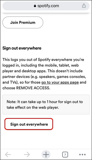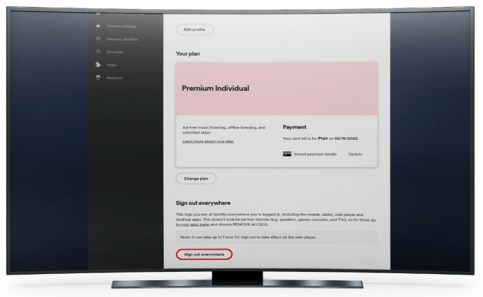 다른 기기에서 Spotify에 로그인한 경우 다른 사람이 다른 기기에서 내 계정을 사용하고 있을 수 있습니다. 이 경우 Apple TV의 Spotify 계정에서 로그아웃됩니다. 웹 브라우저 옵션을 사용하여 로그인한 모든 기기에서 로그아웃해 보세요. 방법은 다음과 같습니다.