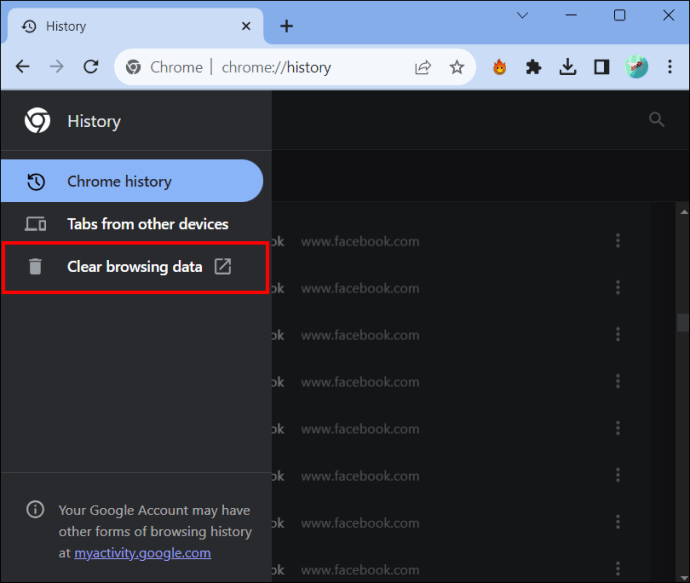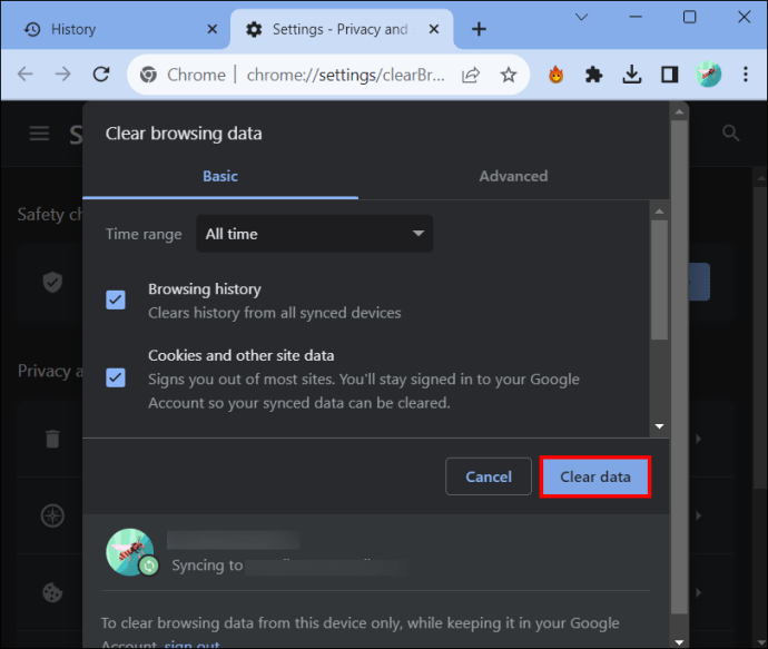 5. 선택을 확인하려면 기록 지우기를 클릭하세요 .