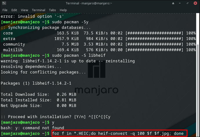 - 터미널을 열고 "sudo pacman -S libheif"를 입력합니다.