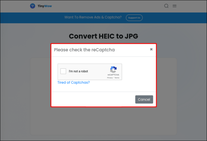 - Recaptcha를 완료하고 이미지 처리가 완료될 때까지 몇 초간 기다립니다.