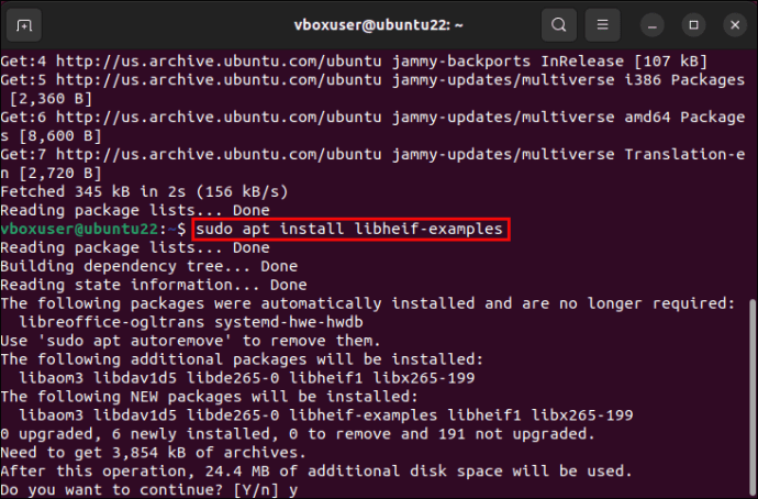 - 터미널을 열고 "sudo apt install libheif-examples"를 입력합니다.