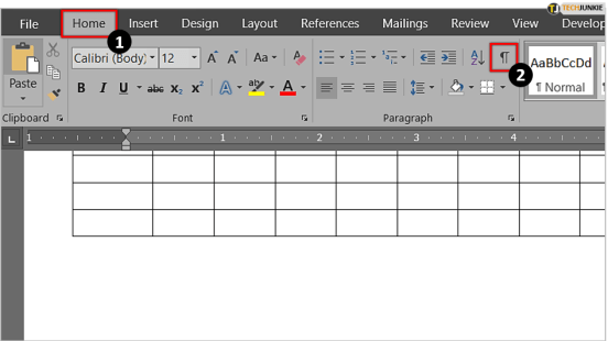 구역 나누기가 있는 위치를 더 잘 보려면 서식 표시를 표시하는 옵션을 활성화해야 합니다.이렇게 하려면 "홈" 탭 으로 이동하여 "단락 " 섹션에서 "필크로" 기호를 찾으십시오. 역 P/소문자 q처럼 보입니다.