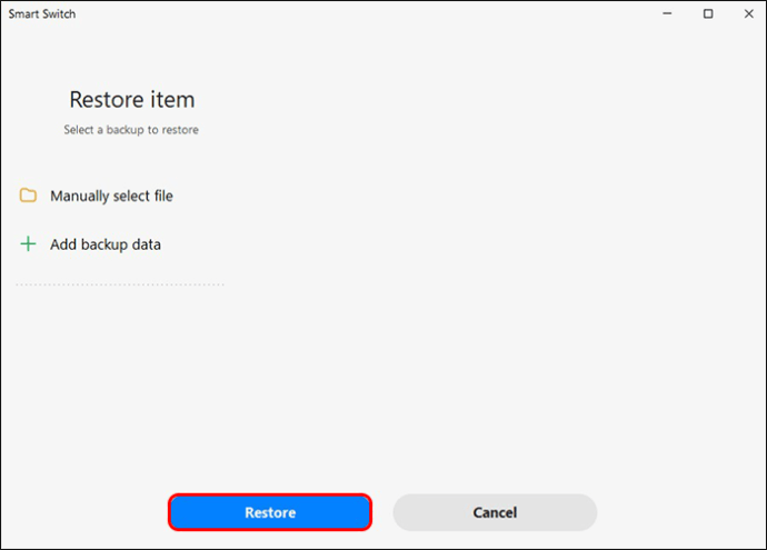 - "복원"을 누르십시오. 앱이 컴퓨터에서 백업된 데이터를 찾습니다.