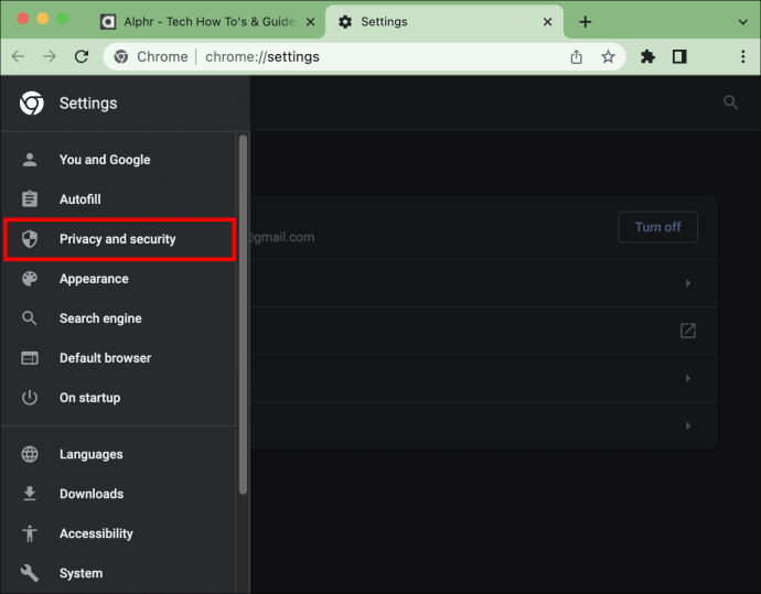 - 왼쪽 창 메뉴에 있는 "개인 정보 및 보안"을 누릅니다.
