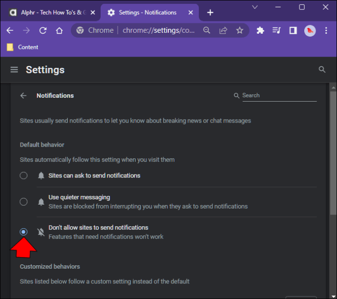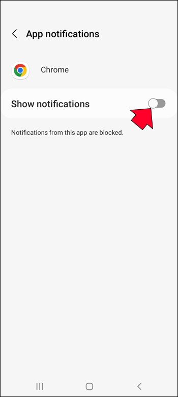 - Chrome 알림을 중지하려면 '사이트에서 알림을 보내도록 허용하지 않음' 옆의 스위치를 사용으로 전환합니다.