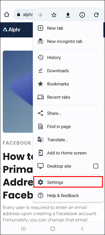 - Android에서 Chrome을 실행하고 오른쪽 상단 모서리에 있는 "점 세 개" 아이콘을 누르십시오.