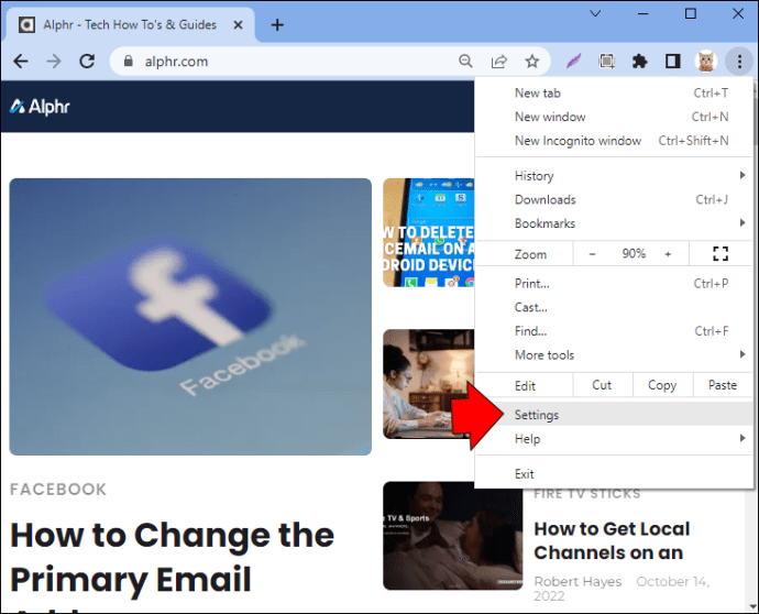 - 드롭다운 메뉴에서 "설정"을 누르십시오.