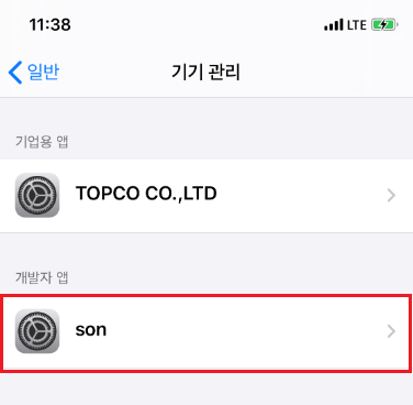3-4) 개발자 앱 부분에 있는 인증서를 선택합니다.