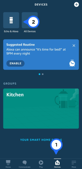 Alexa 앱 하단의 '장치'를 탭한 다음 ' Echo & Alexa '를 탭 합니다.