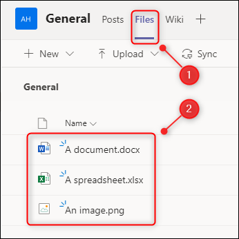 "게시물"탭에서 공유하는 모든 파일은 Microsoft Teams에 업로드되고 "파일"탭에서 사용할 수 있습니다.