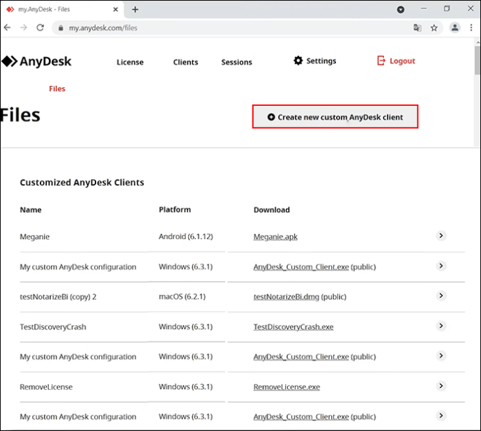 - "새 사용자 지정 AnyDesk 클라이언트 만들기" 옵션을 클릭합니다.