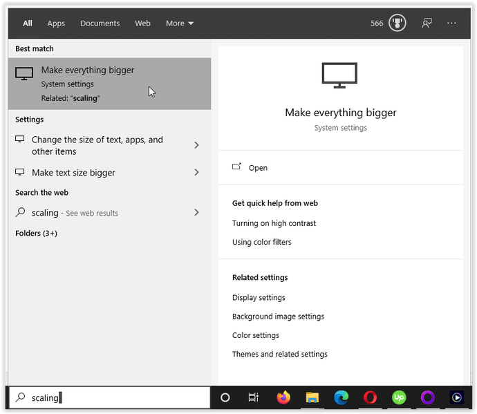 때때로 4K와 같은 고해상도의 모니터는 텍스트, 창 및 아이콘을 더 작게 만드는 경향이 있습니다. 이러한 상황은 특히 먼 거리에서 화면의 내용을보기 어렵게 만듭니다. Windows 10은 일반적으로 4K 디스플레이의 배율을 150 %로 자동 조정하여 작은 창과 텍스트를 방지합니다. 그럼에도 불구하고 기본 모니터 용인 경우에도보다 편안하게 볼 수 있도록 모든 항목의 크기를 수동으로 늘릴 수 있습니다.