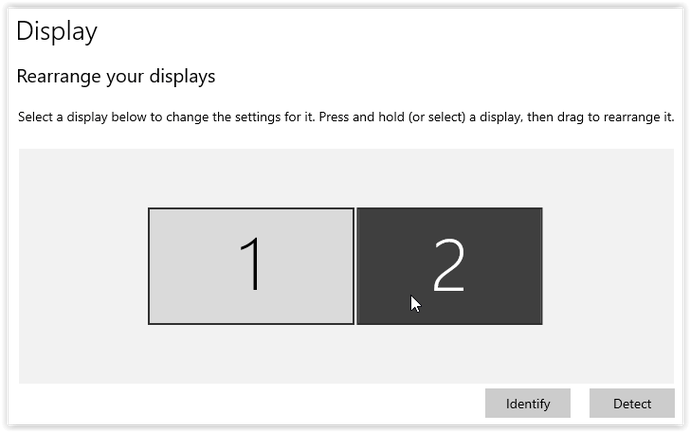 - 1 단계시작 메뉴-> 설정-> 시스템-> 디스플레이로 이동하여 확장 할 모니터를 선택합니다. 선택할 모니터가 확실하지 않은 경우 식별을 클릭 할 수도 있습니다.