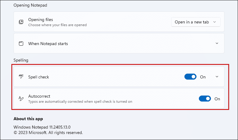 3단계: 맞춤법 섹션에서 맞춤법 검사 및 자동 수정 토글을 활성화합니다 .