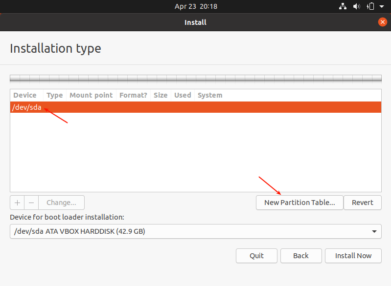 첫 번째는 운영 체제가 설치되지 않은 파티션되지 않은 하드 드라이브를 사용하는 것입니다. 그런 다음 이미 분할 된 하드 드라이브에 설치하는 방법 ( 우분투 18.04 와 같은 기존 OS)을 고려할 것 입니다.