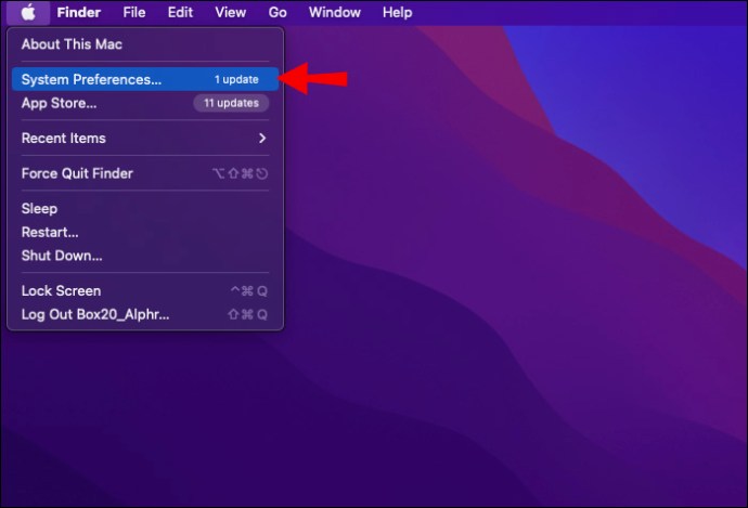 - Apple 아이콘을 클릭하여 기본 메뉴에 액세스합니다.