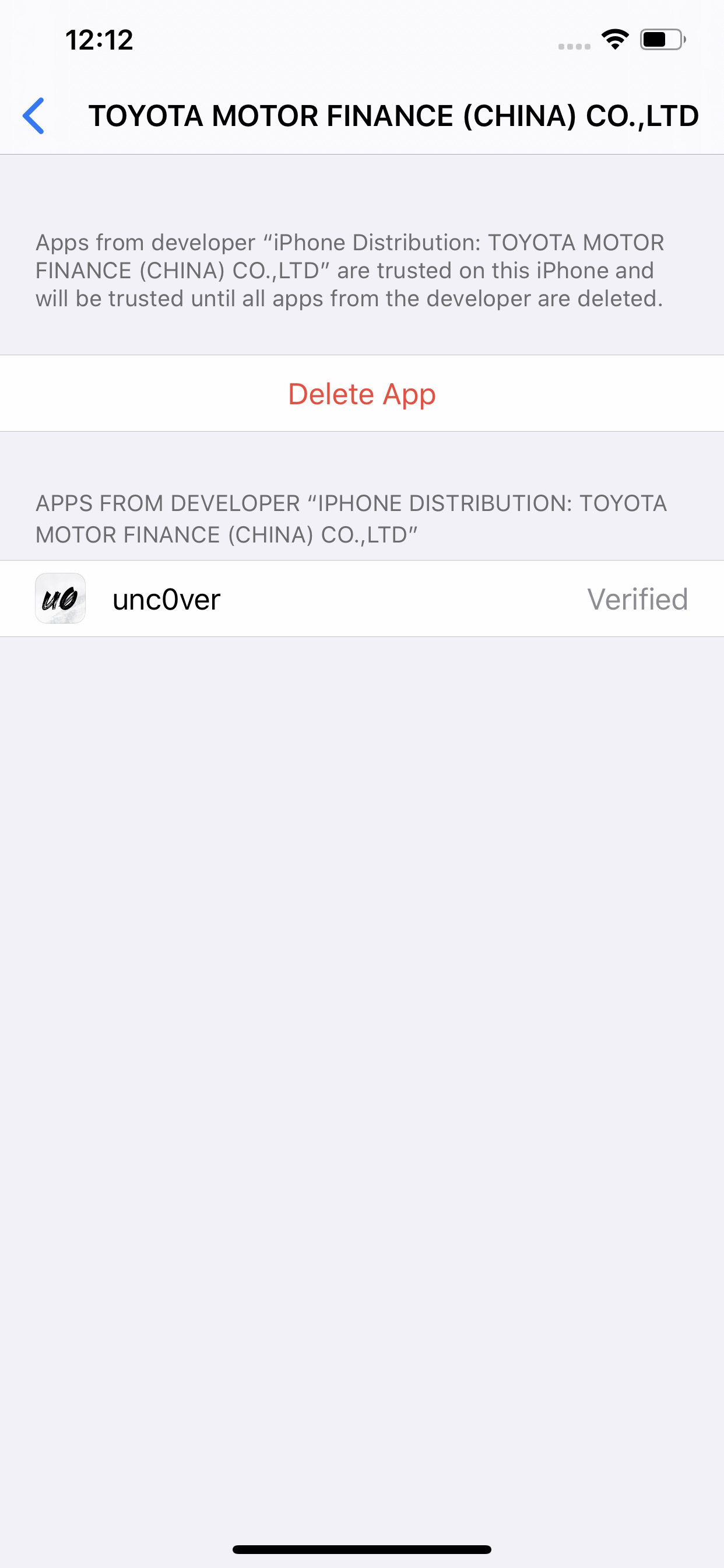 스프링 보드로 돌아갑니다. 이제 unc0ver 앱이 설치되어 있습니다. 그러나 개발자를 승인 할 때까지는 시작할 수 없습니다. 설정을 한 번 더 실행하여이 작업을 수행합니다 .