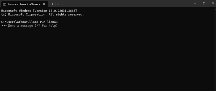 2단계: 아래 명령을 입력합니다 . 다운로드한 모델 이름을 명령에서 llama3 으로 대체할 수 있습니다 .