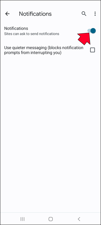 - Chrome 알림을 중지하려면 '사이트에서 알림을 보내도록 허용하지 않음' 옆의 스위치를 사용으로 전환합니다.