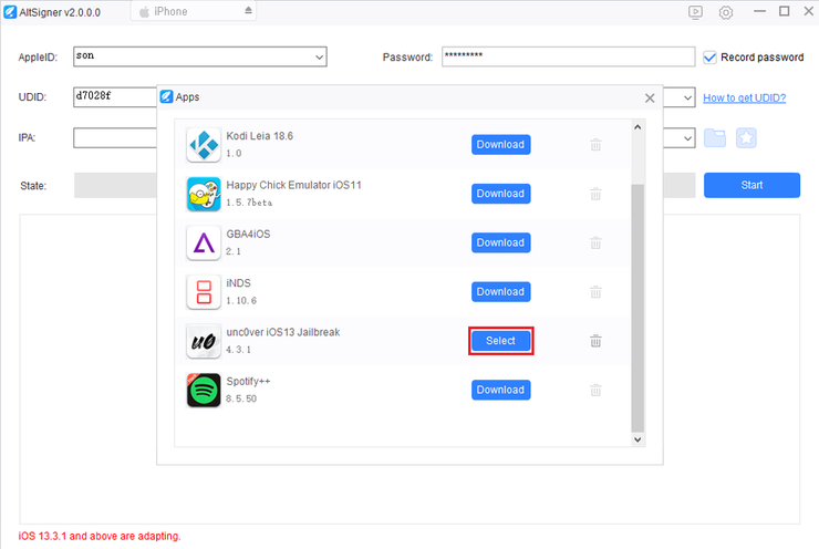 2-3) unc0ver 다운로드가 완료되었으면 Select 버튼을 눌러줍니다.