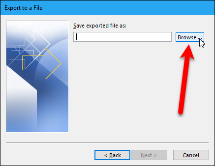 이제 위치를 선택하고 내 보낸 파일의 이름을 지정해야하므로 "찾아보기"버튼을 클릭하십시오.
