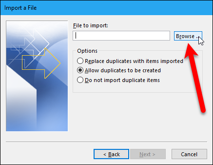 이제 가져올 파일을 선택해야하므로 "찾아보기"버튼을 클릭하십시오.